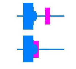 In older cars (and in some modern race cars), drivers had to use a technique called “double clutching” to avoid this problem. When a driver wanted to change gears, he would first engage the clutch and shift into neutral, so that the collars weren’t engaging any gears. He would then rev the engine until the RPM of the engine reached the right speed: the speed at which the desired output (blue) gear would be spinning at the same speed as the wheels–and hence the same speed as the collar. He could then lock the collar and blue gear together.
